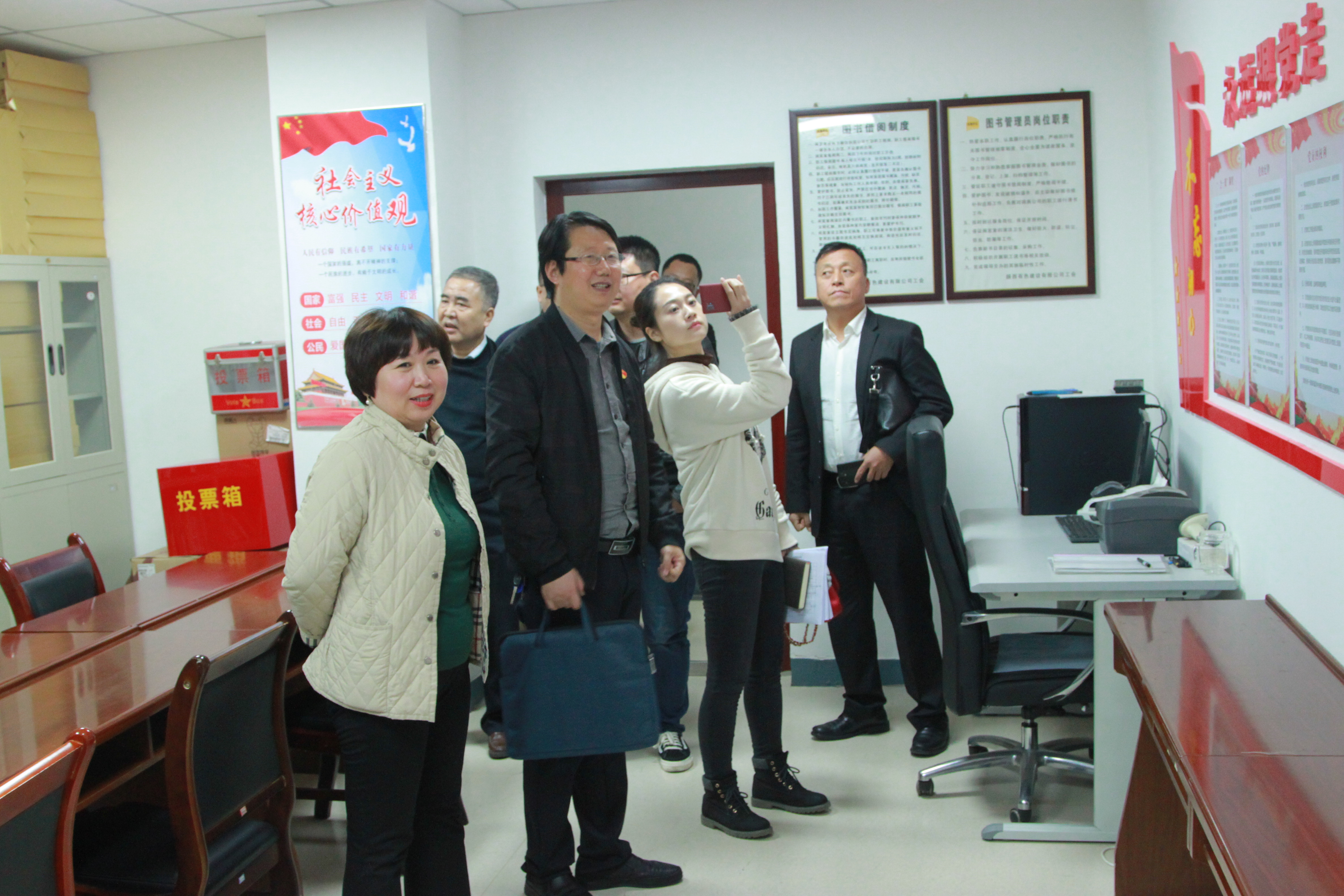 會后,王新權對公司的辦公場所、黨員活動室及職工書屋進行了現場檢查。