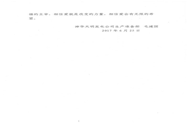 信中指出,神華天明發(fā)電公司員工毛建國(guó)家人長(zhǎng)期患病,妻子又突發(fā)嚴(yán)重的心臟病,讓原本不富裕的家庭更是雪上加霜。在了解到相關(guān)情況后,神華天明項(xiàng)目部負(fù)責(zé)人高度重視,積極開(kāi)展愛(ài)心捐款活動(dòng),為毛建國(guó)一家伸出了援助之手,幫助其度過(guò)難關(guān)。